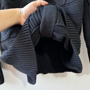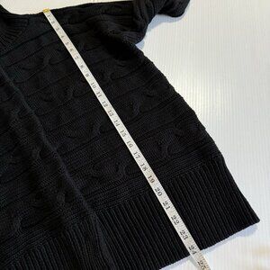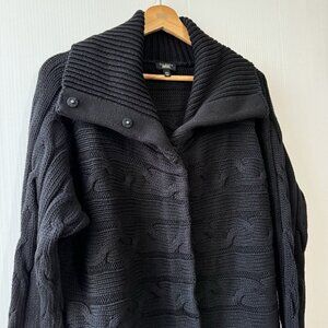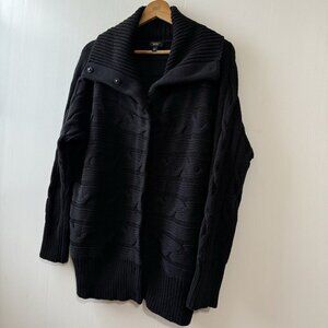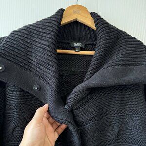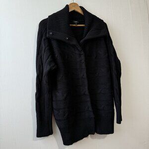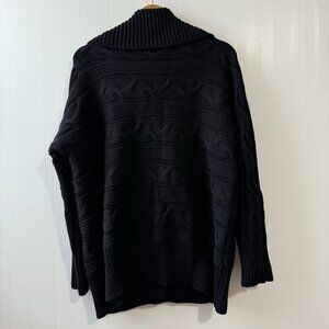 TALBOTS Woman Petite 2X Cable Knit Cowl Neck Sweater Snap Button Black Cotton