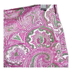 TALBOTS Women's Size 10 Pants - Cropped, Paisley, Pink, Green, Side Zipper, Tapered, Side Slits, 97% Cotton, 3% Spandex