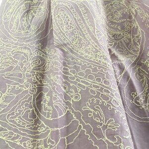 This elegant Talbots women's skirt in size 10 features a light lavender color with a beautiful paisley embroidered design, adding a bohemian touch to the A-line style. The knee-length skirt has a full shape and a zip closure for easy wear. Made of cotton, this machine-washable skirt is suitable for casual or business occasions during the summer, fall, or spring seasons.