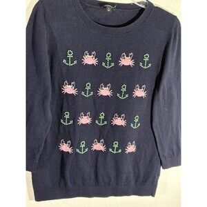 TALBOTS Women Navy Sea Life Embellished Casual Pink Crabs Green Anchor Medium Sweater