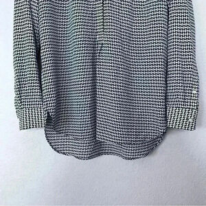 TALBOTS Women Slippery Polyester Blouse Long Sleeve Black White Geometric Print.