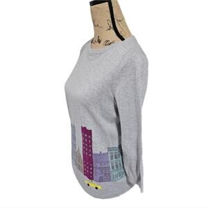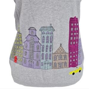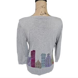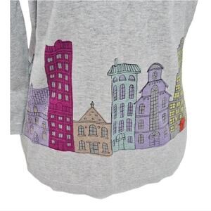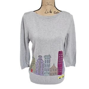 TALBOTS Women Thin Stretch Cotton Rayon Sweater Embroidered City View M