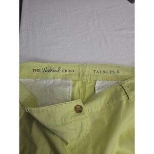 Talbots the Weekender Chino pants for women size 6. Lemon lime in color. Cuffed ankles, pockets, flat front, belt loops, zipper and button closure. Cotton, spandex fabric blend.