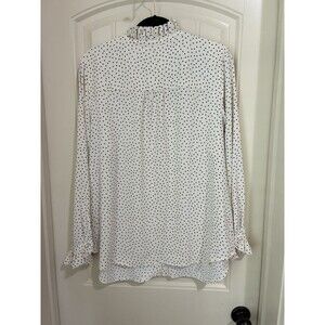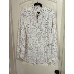 TALBOTS Womens Black Polka Dot Button Front Blouse Size 1X Ruffle Collar Pearls