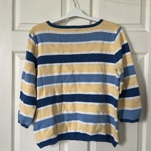 TALBOTS Women’s Blue and Yellow Striped 3/4 Sleeve Sweater Size XL