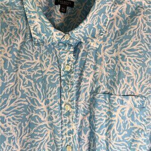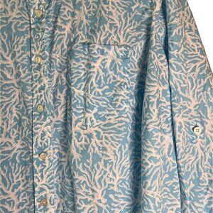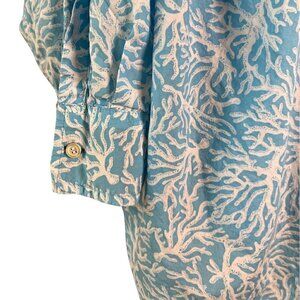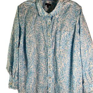 TALBOTS Women's Button Down Blue & White Blouse Sea Coral Pattern Size 2X Petite