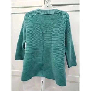 TALBOTS Womens GREEN Ribbed Sweater Large 100% Cotton 3/4 Sleeve