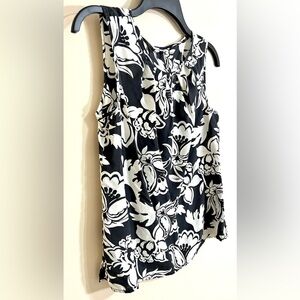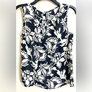 TALBOTS Women's Lightweight Silk Sleeveless Blouse Black White Floral Petite S