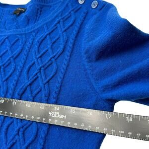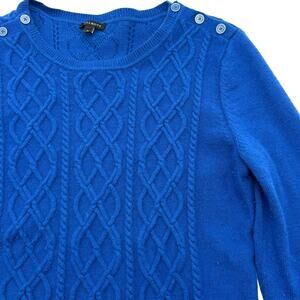 TALBOTS Women's Medium Royal Blue Lambswool Fisherman Cable Knit Tunic Sweater