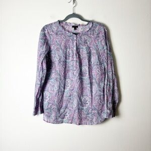 TALBOTS •Women’s Pastel Paisley Half Button Ruffle Neckline Long Sleeve Top Sz M