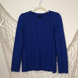TALBOTS Women's Petite Blue Confetti-Flecked Cable Knit Crewneck Sweater MP