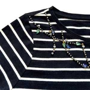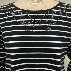 Talbots Embellished Long Sleeve Striped Tee/Blouse Black White