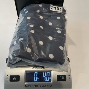 This is a TALBOTS women's navy blouse in size M. It features a collared neckline, button closure, and long sleeves with a casual sleeve style. The blouse is made of 100% cotton fabric that is semi-sheer and lightweight, suitable for all seasons. With a polka dot pattern in blue, this blouse is perfect for various occasions like travel, parties, casual wear, work, or business settings.