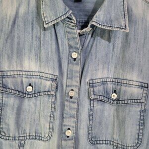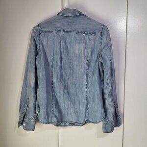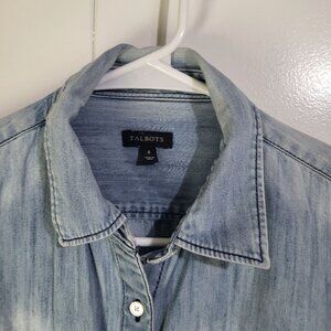 TALBOTS Women's SZ 4 Distressed Washed Denim Button Up Shirt Grunge Cotton