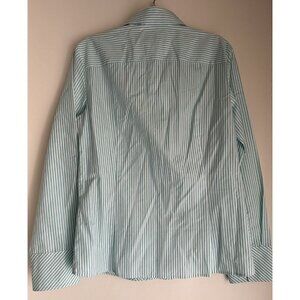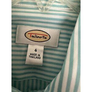 TALBOTS Womens Size 4 Striped Blouse Dress Shirt White Aqua Chevron New.
