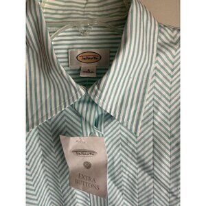 TALBOTS Womens Size 4 Vintage Striped Blouse Dress Shirt White Aqua Chevron New