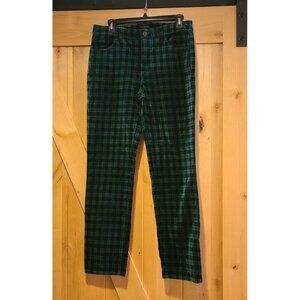 TALBOTS Women's Size 6P Green Checkered Velveteen Straight Leg Pant