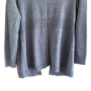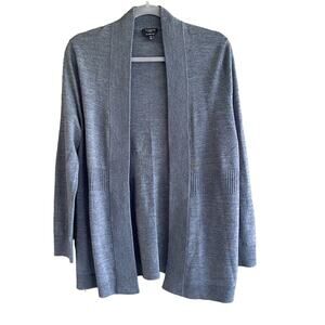 TALBOTS Women's Size MP Medium Petite Open Front Cardigan. 100% Merino Wool. Gray with ribbing at waist for a bit of definition. Excellent pre-owned condition.