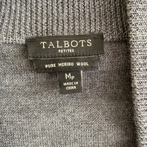 TALBOTS Women's Size MP Medium Petite Cardigan Merino Wool Gray Ribbed Waist