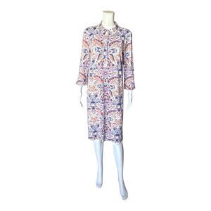 TALBOTS Womens Size Medium Button Half Placket Royal Paisley Collar Shirt Dress