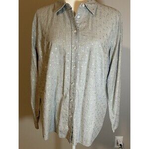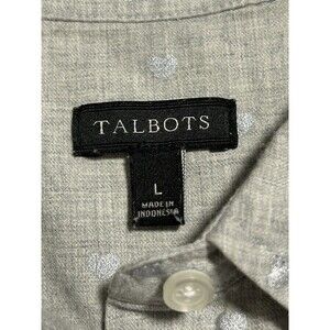 TALBOT’S Women’s Top Large Gray Silver Heart Print Button Front Shirt