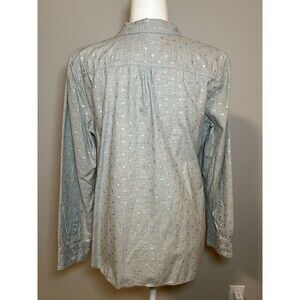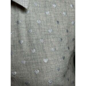 TALBOTS Women's Top Large Gray Silver Heart Print Button Front Shirt