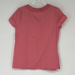 TALBOTS Women’s Top S Pink Keyhole Neck Short Sleeve 100% Cotton Blouse Pleated