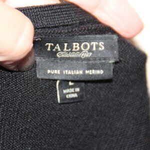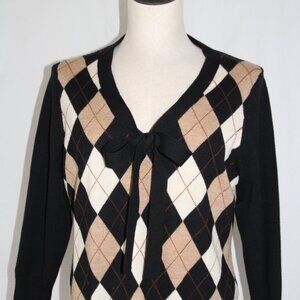 TALBOTS Women's V-Neck Large Black Argyle Preppy Academic Merino Wool Sweater