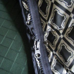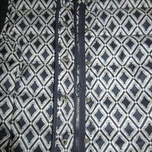 TALBOTS Womens Vest Size M Puffy Quilted Down Fill Navy Pattern Pockets Zip/Snap
