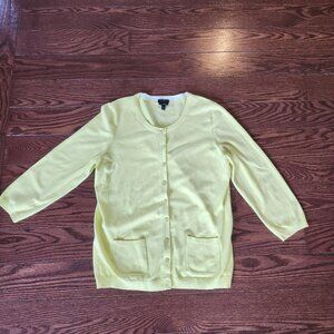 TALBOTS Women’s Yellow Lightweight Pima Cotton Cardigan Sweater Size M pockets