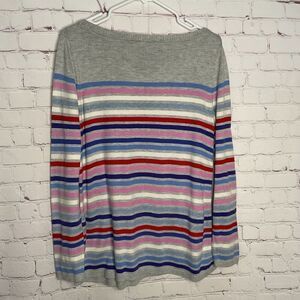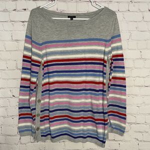 TALBOTS Womens SIDE BUTTON GRAY & MULTI-STRIPE BATEAU NECK SWEATER Cotton Size M.