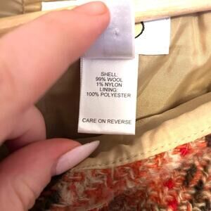 Material: 99% wool 1% Nylon Lining is 100% Polyester