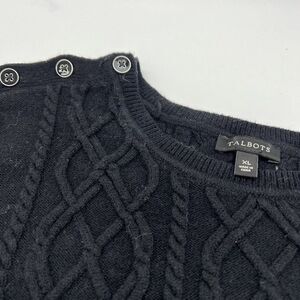 TALBOTS XL Nylon/Lambs Wool Black Warm Thick Shoulder Buttons Sweater Pullover