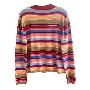 TALBOTS XL Striped V-Neck Polo Long Sleeve T-Shirt Multicolor Preppy Academia