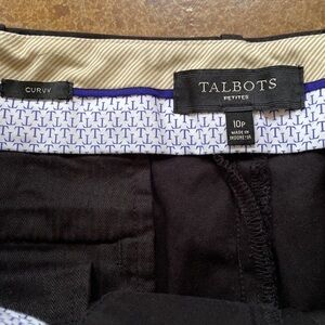 Talbots black cotton chino CROP PANTS - CURVY FIT. Size 10 petite, cotton stretch, generous curvy fit, approximately 25” inseam, front zip and button closure, see pictures for details.