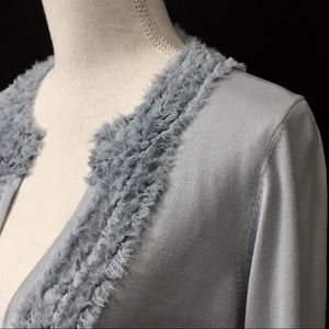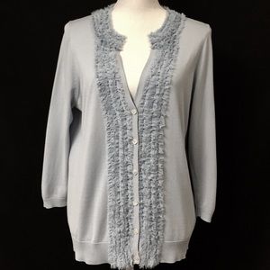 TALBOTS blue silk blend ruffles sweater. Sz L. EUC