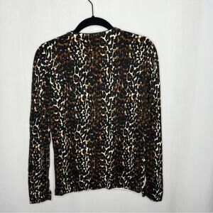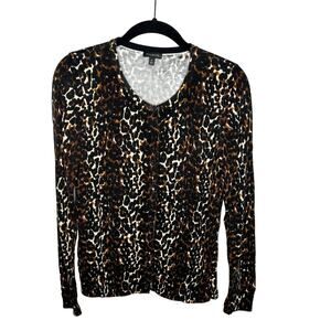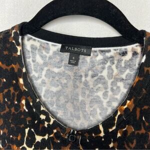 Talbots brown black leopard cheetah print button up cardigan sweater women's size small