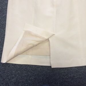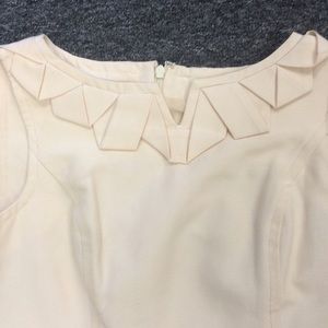 Cream dress with folded embellishment on collar. Zippered back. Measurements in last couple pics - tag was cut. Shoulder to hem is 34”.