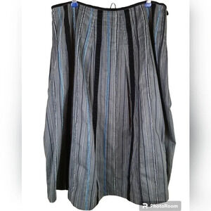 Talbots full skirt with velvet ribbon accents. Excellent used condition. Cotton skirt with blue and black stripes. Velvet stripes vertically around skirt.