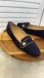 TALBOTS l Navy Blue Suede Pointed Toe Nautical Gold Buttons Flats Size 6.5