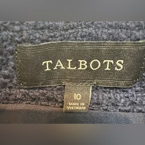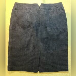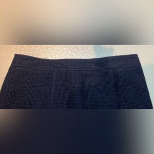 Women’s Talbots classic tweed navy blue skirt. Marled fabric look. Vey soft. 2- fringe lines down front of skirt. Back, zipper, hook-eye closure. Fully lined. Classic designer look. Very good used condition.