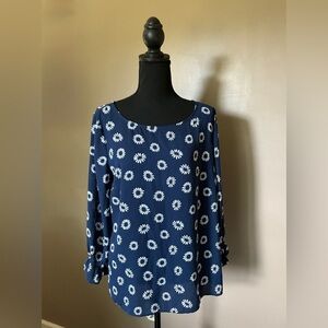 TALBOTS navy blue daisy print top ruffle cuff blouse EUC sz M floral cute