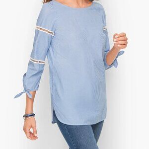 TALBOTS petite Tie Detail Poplin Top in Gentle Stripe (SP)