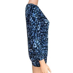 TALBOTS petite cardigan size LP animal print and pure Italian merino blue