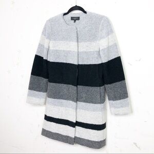 Talbots petites boiled wool striped coat, with invisible button closure and pockets 55% polyester 45% wool .