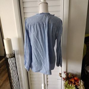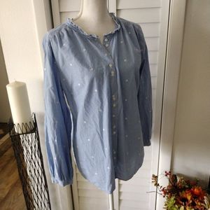 TALBOTS ruffle band collar embroidered polka dot button front blouse Sz L