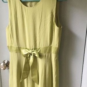 Talbots silk dress size 6 green chartreuse color...new with tags...flounced skirt bow at waist...