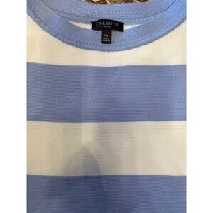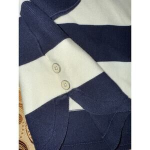 Gorgeous! Cream sweater with periwinkle and navy striped and enamel buttons at hem