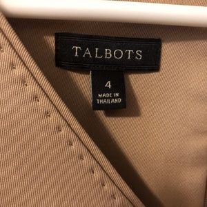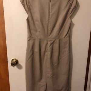 Size 4- Shell: 100% Cotton/Lining 100% Polyester. Cream top stitching on sleeves and neckline. Dress is 36" long and skirt is 22.5" long