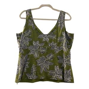TALBOTS top, Large, sleeveless, short length Green and black floral. Fully Lined